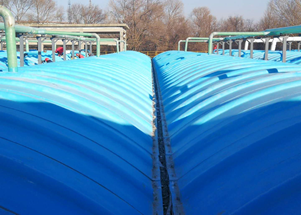 一、改變了傳統(tǒng)玻璃鋼封閉結(jié)構,改進了玻璃鋼封閉罩的密封技術,根治了異味氣體和VOCs的散發(fā)。封閉罩采用模具法制作一次成型,一是提高了整體強度,尤其是跨度大于7米以上的封閉罩,使用效果良好。二是設計封閉罩結(jié)構時加強了耐太陽照射老化的表面層,增加耐用性,壽命可達到15年以上。三是克服了混凝土施工帶來的各結(jié)合部位的非標準性的困難,既使封閉罩和池子之間的密封達到零泄露,又能保證拆裝方便,為今后對水處理設備和填料的維修、更換提供了方便。